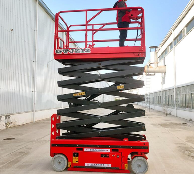 自行式:使用人员可以不用下升降台,就可控制机械升降并且行驶到其他的工作地点,自身具有行走及转向驱动功能,不需人工牵引,不需外接电源,移动灵活方便。